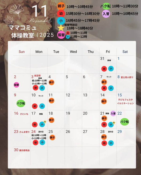 体操教室11月カレンダー