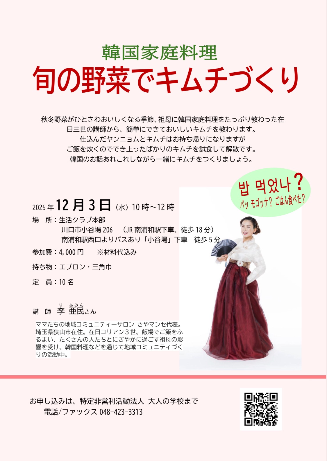 12/3 韓国家庭料理「キムチづくり」のお知らせ