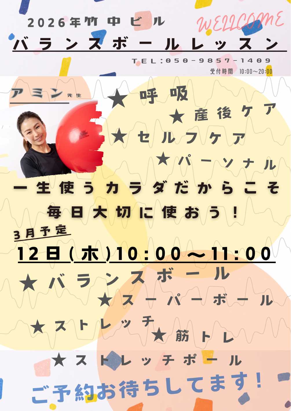 2025年度のバランスボールレッスンの予定 2026年2月 19日 10:00〜11:00 |
